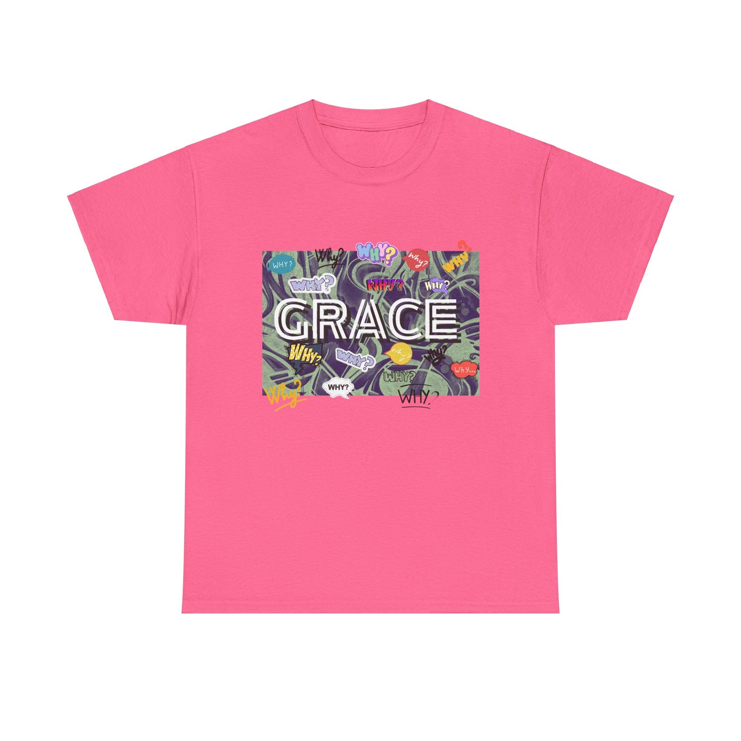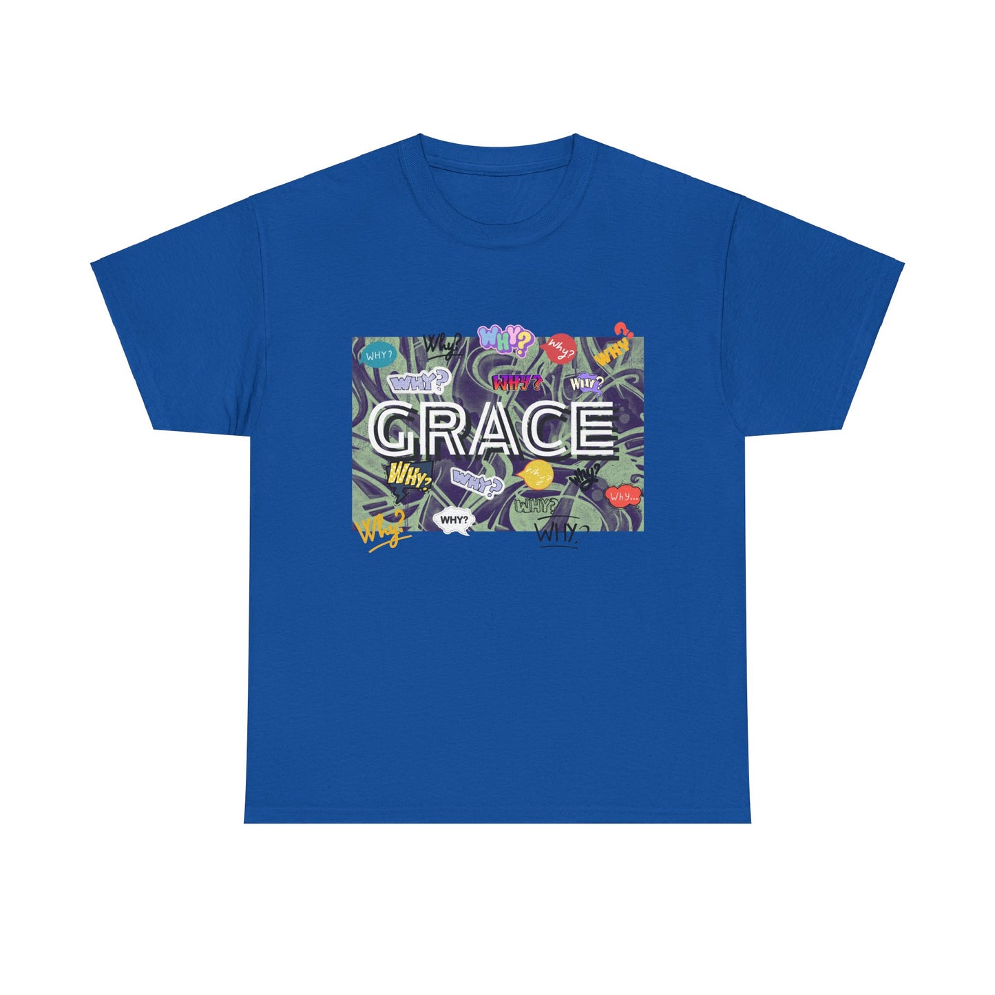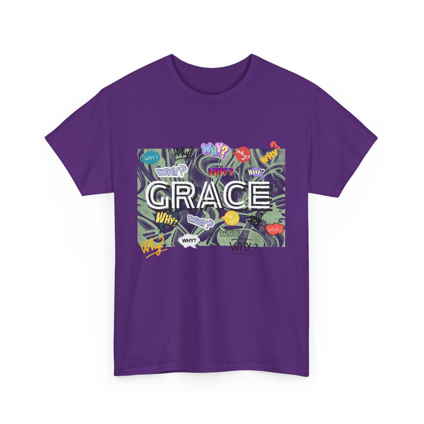 Discover the power of grace with our handmade 'Grace' T-shirt. Featuring a unique design on the back that makes 'Grace' pop as the answer to life's why's. Made from 100% ethically grown US cotton, this durable, medium-weight tee offers year-round comfort and is certified for safety and sustainability!